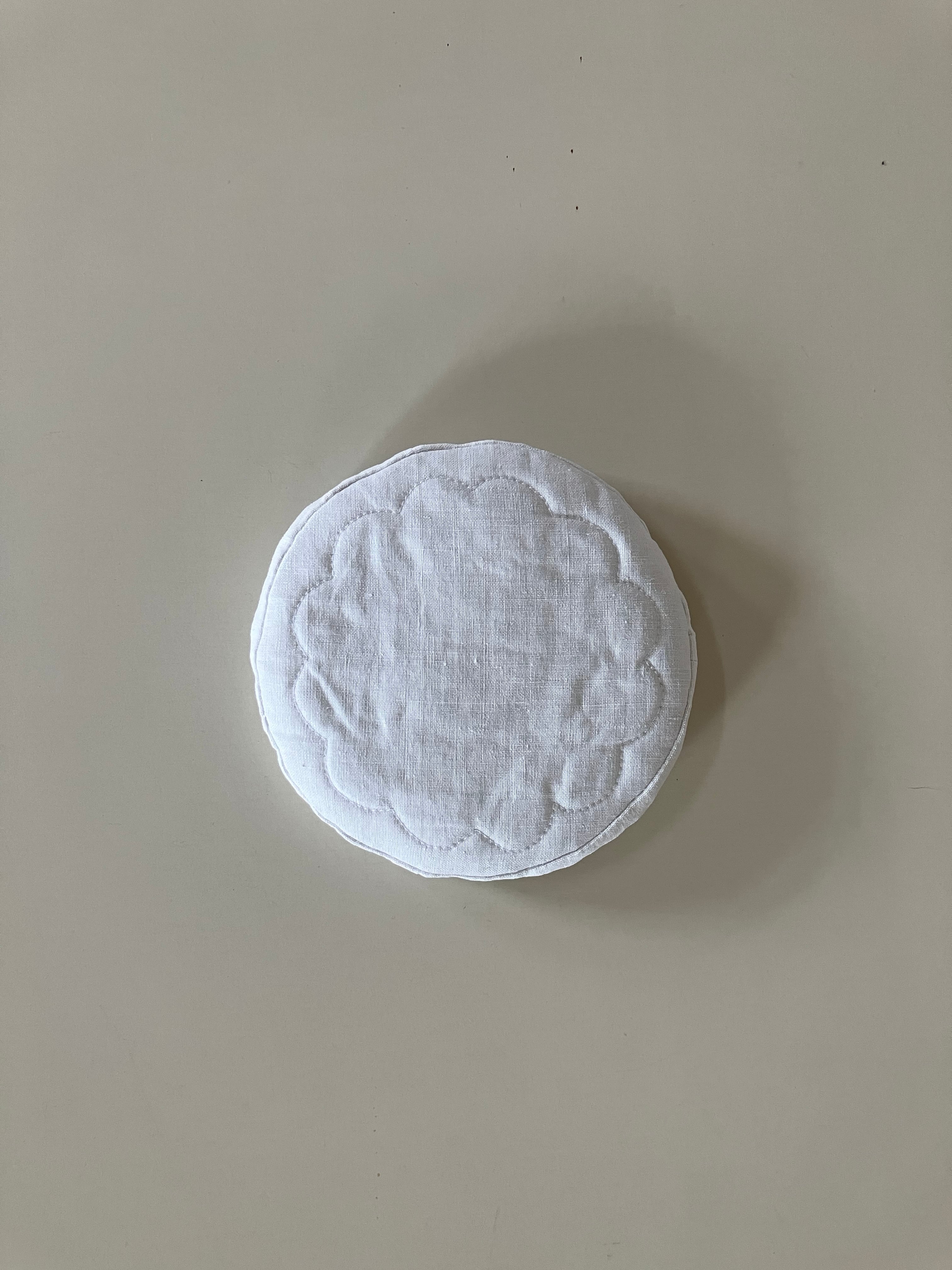 表、裏ともアンティークリネンにステッチを施し、厚みをつけて仕立てています。